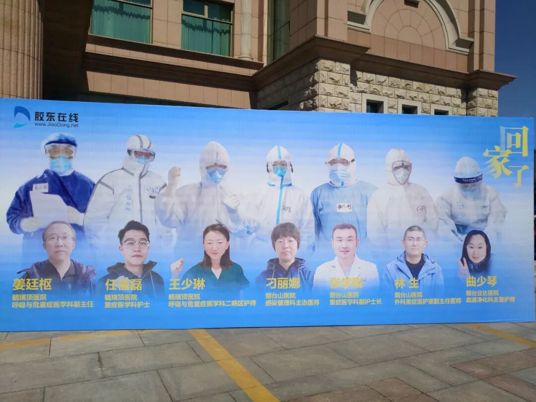 疫情一线医护英雄们,你们辛苦了!烟台市人民热情欢迎你们回家!给你们点赞