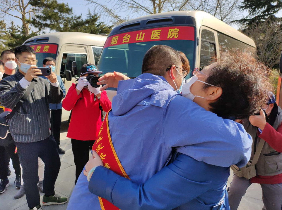 饱含热泪热烈欢迎英雄。你们辛苦了,救死扶伤,为山东烟台百姓争光,感谢你们。——老朋友
