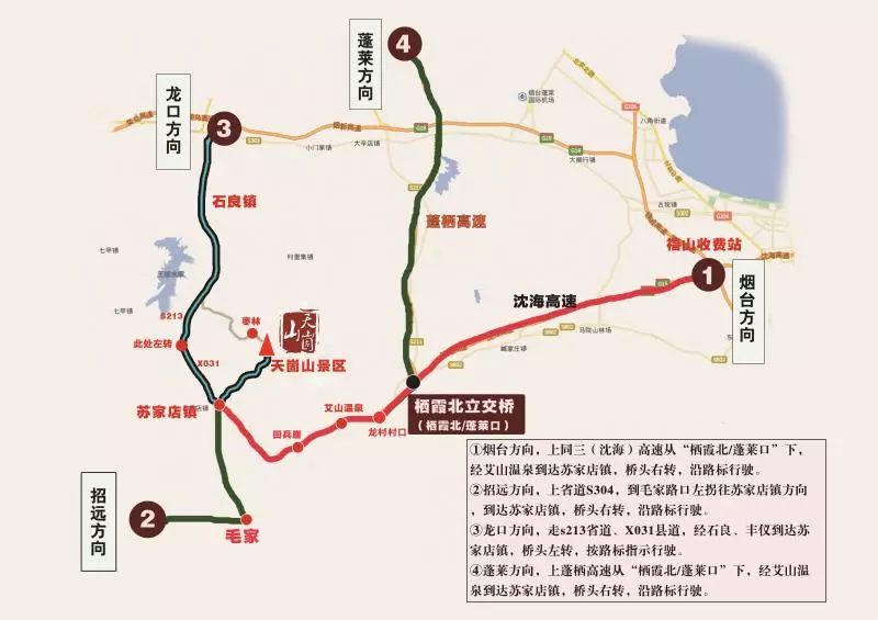 从龙口方向来的游客,后山道路封闭,请绕行苏家店镇大桥,进入景区。