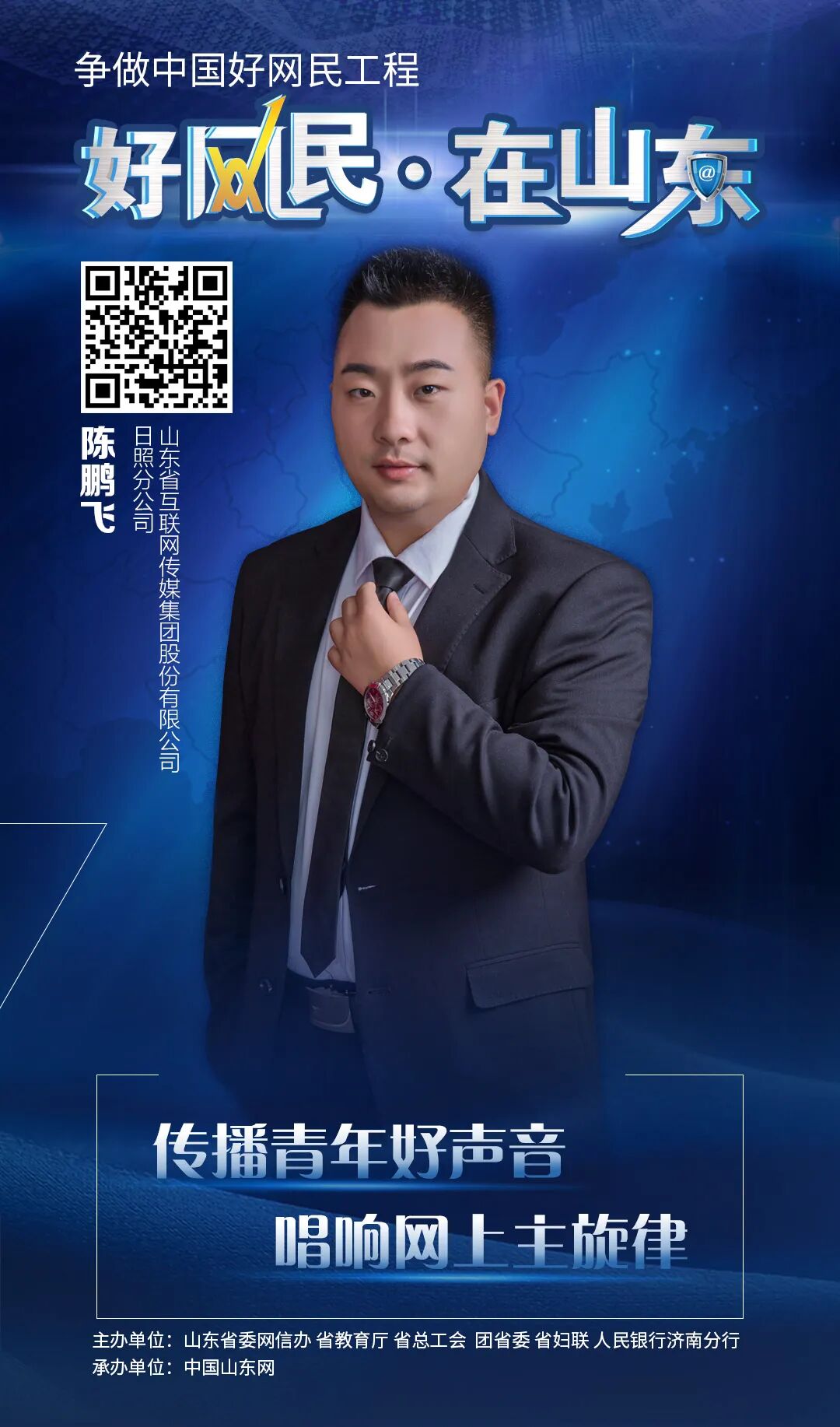 2019年,陈鹏飞组织拍摄四场大型快闪活动,用视频讲述当代日照人爱国情怀。其中,元宵节千人快闪《我爱你中国》,歌声献礼新中国成立70周年,引导抒发群众的爱国之情;“雷锋纪念日”五百人快闪活动,歌唱《学习雷锋好榜样》,在网上传播广泛,现场很多观众纷纷点赞;五四青年节,组织以“青春心向党,建功新时代”为主题的千人快闪活动,被新华网、人民网等十余家媒体报道,传播日照青年们用歌声献礼祖国的好声音;国庆日,组织万人快闪,与岚山人民共祝祖国生日,参与人数众多,展示了新中国成立70年以来的辉煌成就。