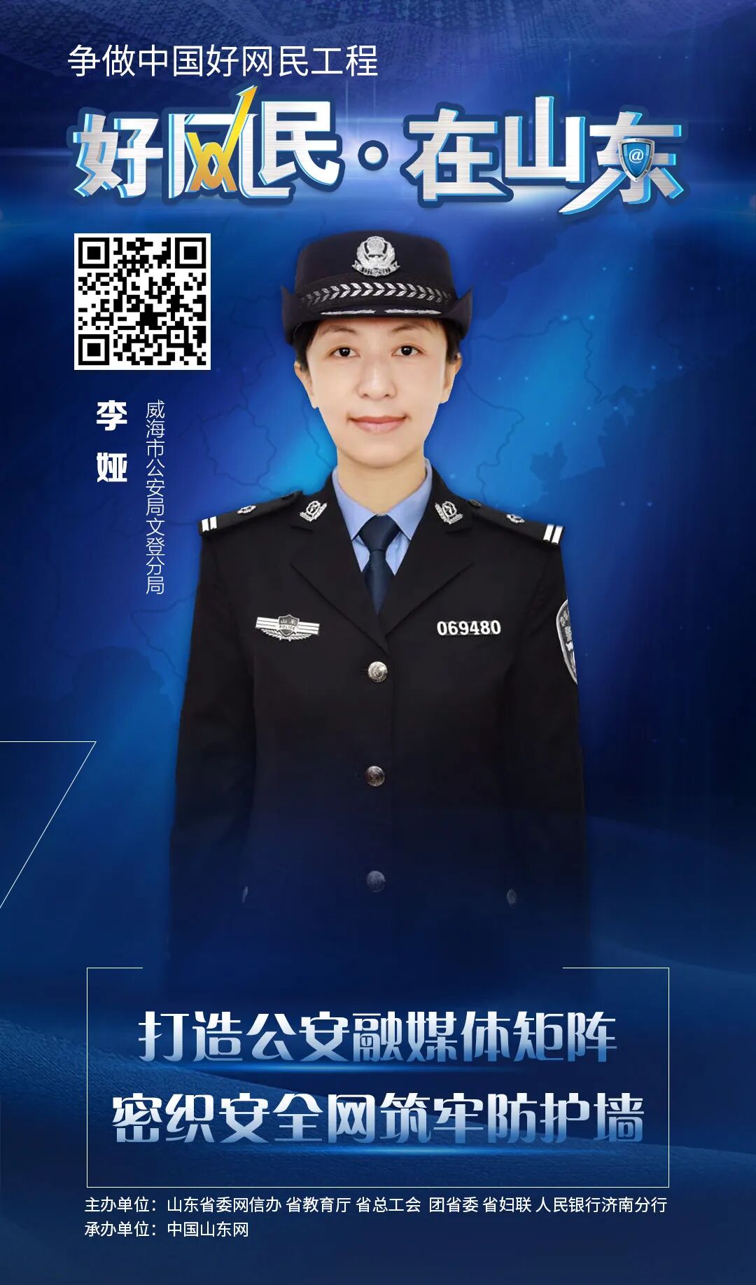 李娅多渠道多角度提升公安宣传的受众面和群众参与社会治理的热情度,打造文登公安融媒体中心,真正让文登公安宣传提档升级。先后开通了“文登警方在线公众号”“现场云”“今日头条”“抖音”“快手”等官媒平台,同时借力“人民日报”“人民公安报”“齐鲁晚报”“威海晚报”“文登电视台”“文登大众”等多家报业传媒打造融媒体矩阵,多角度多层次宣传公安工作,不断提升公安形象,提升群众满意度。