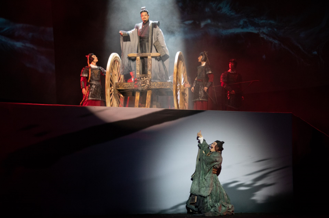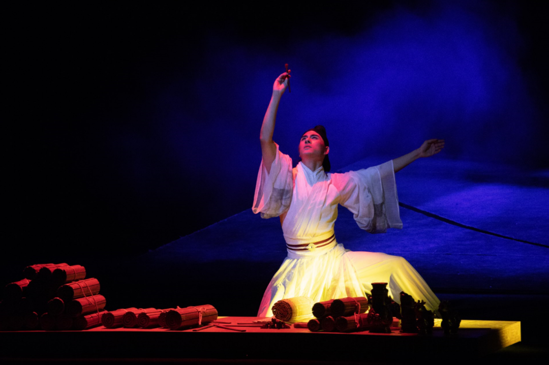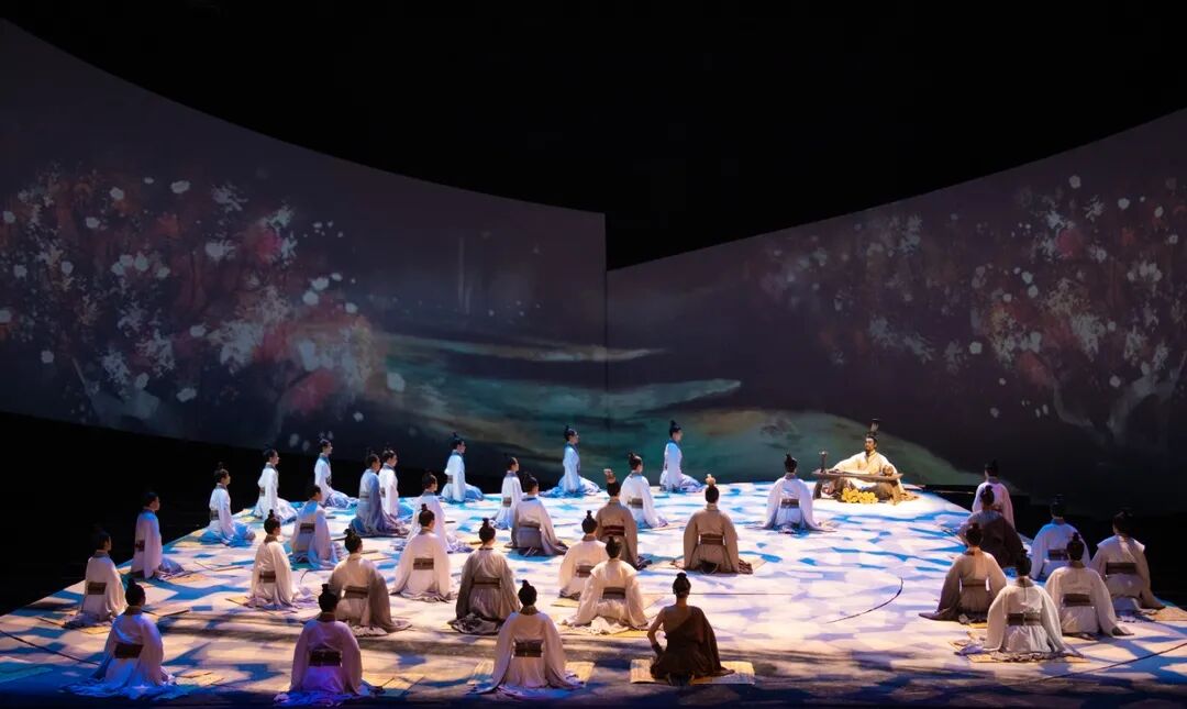 《孔子》突破传统话剧的表现方式,大胆运用“构成”的戏剧样态谋篇布局,凝练出“君子”“进退”“为政”“去国”“见南子”“困境”“渡河”和“彼岸”八场意象,融合戏剧、戏曲、音乐、舞蹈、美术等多种艺术元素,以超现实的表现手法,营造出一种特有的春秋气象,展示出思辨美、惆怅美、宏阔美、空灵美,舞台呈现令人耳目一新。