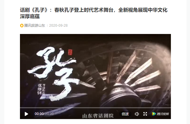 话剧《孔子》首先在孔子形象的塑造方面有突破和创新,它塑造了一个在春秋时期“礼崩乐坏”的时代,为了理想而四处碰壁同时痴心不改的伟大形象,同时它又很有层次感和艺术感染力。在舞台艺术呈现方面有创新,它不仅仅是传统的话剧,这部剧突破了传统的平面话剧艺术,融合了舞剧、交响乐,具有音诗画性质,看了美轮美奂,让人耳目一新。可以说是山东继歌剧《沂蒙山》之后推出的又一部精品力作,这也是献给孔子诞辰2571年的一份厚礼。