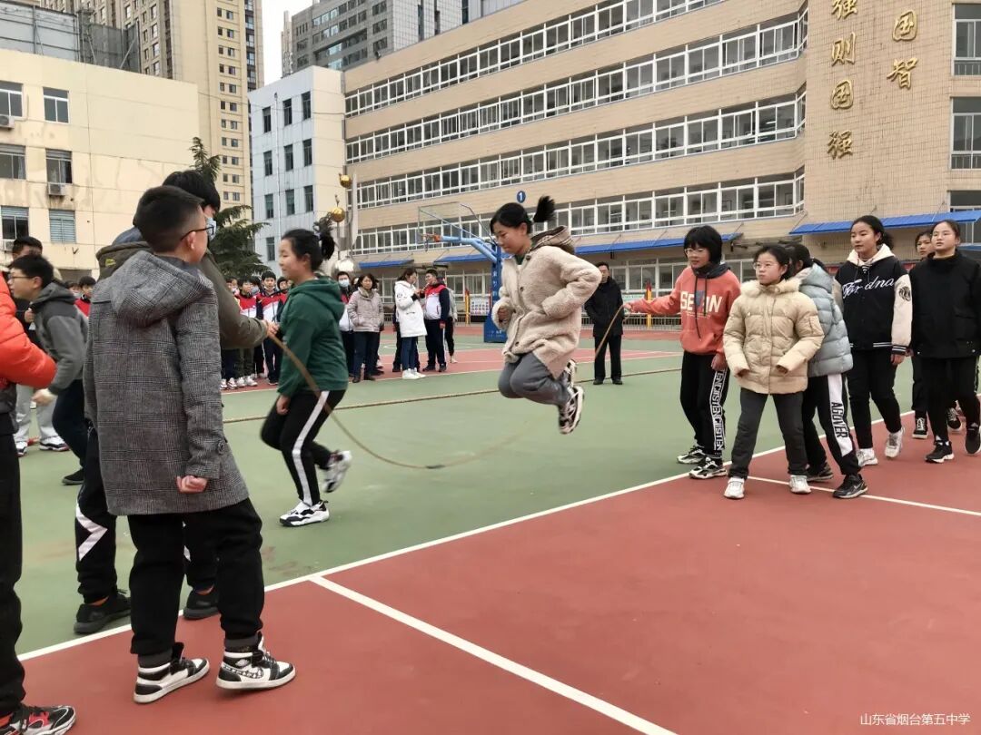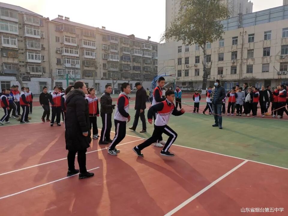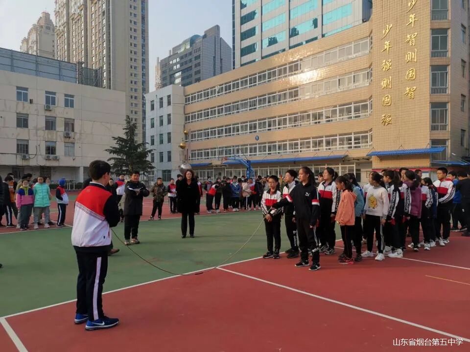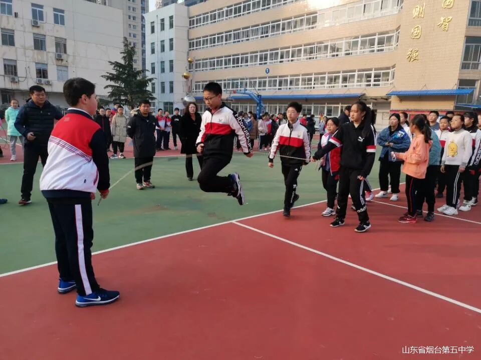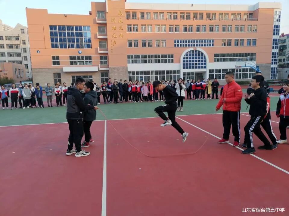 为了强健学生体魄,丰富我校学生课余生活,推动我校阳光体育活动的蓬勃发展,烟台五中近日举行初一初二年级的10人精英团队赛和全员参与跳大绳活动。
