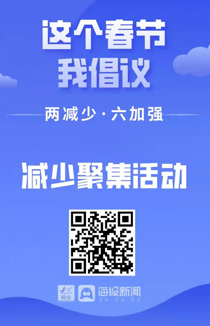 当前,疫情防控形势依然严峻复杂。全球疫情持续蔓延,国内疫情散发多发,“人物同防”“城乡同防”压力有增无减。特别是随着春节临近,流动性和聚集性风险明显提高,防控任务更加艰巨。希望广大市民朋友务必当好保护自身健康、守护家园安全的“责任人”和“明白人”,自觉做到“两减少六加强”,齐心协力巩固拓展来之不易的疫情防控成果。