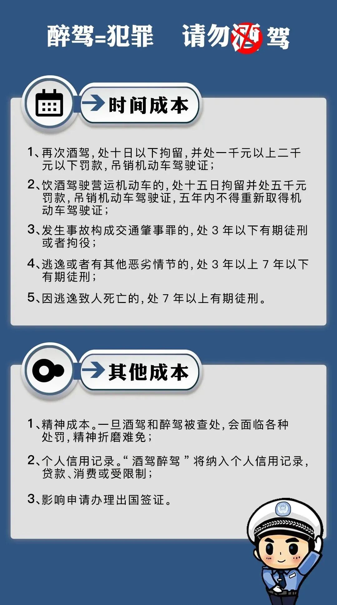 酒驾、醉驾是严重的交通违法犯罪行为,社会危害性极大!为了您和他人的生命财产安全,不论在何时、何处,切勿心存侥幸,切忌酒后开车,切勿以身试法。