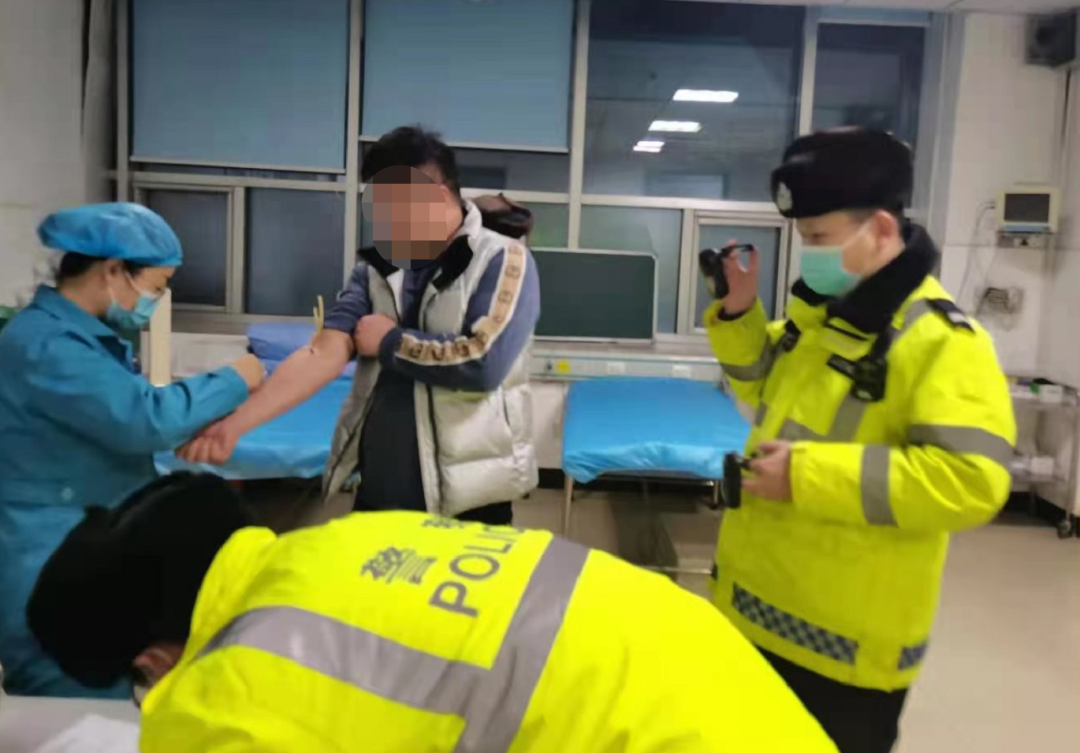 最后,在民警申明法律规定、多次进行警告以及同行朋友的劝说下,该驾驶员只得配合酒精检查。经检测,该男子血液内酒精含量为122mg/100ml,涉嫌醉酒驾驶,民警依法将其带至医院进行抽血。