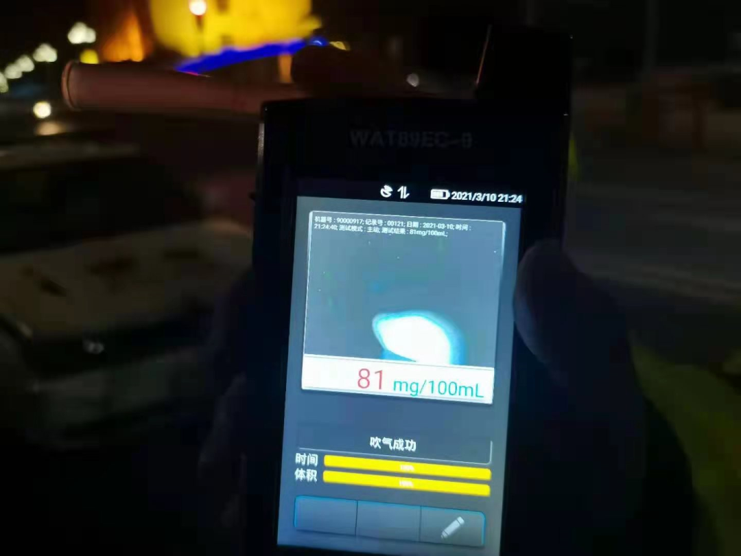3月7日,凌晨1点30分左右,交警一大队在魁星楼隧道西侧出口设卡查处交通违法行为,一黑一白两辆轿车相继停靠在检查点,执勤人员在对两车司机进行酒精初测时,酒精测试仪均有反应,立即命令两名司机熄火下车接受检查。