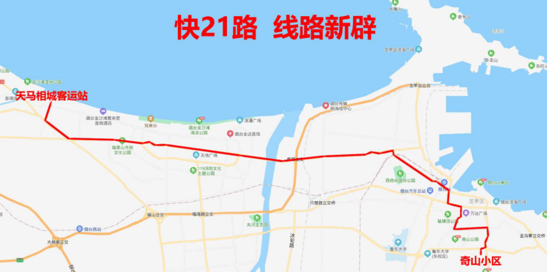 由天马相城客运站发车,沿21路线路走向运行至奇山小区。