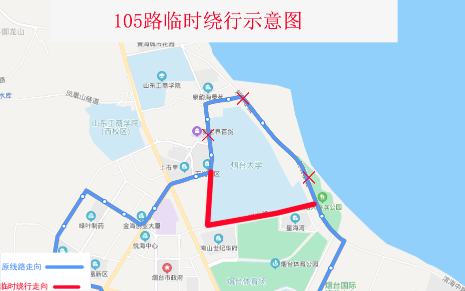 取消:烟台大学、新世界百货、泉韵南路、烟台大学东门等4处站点。