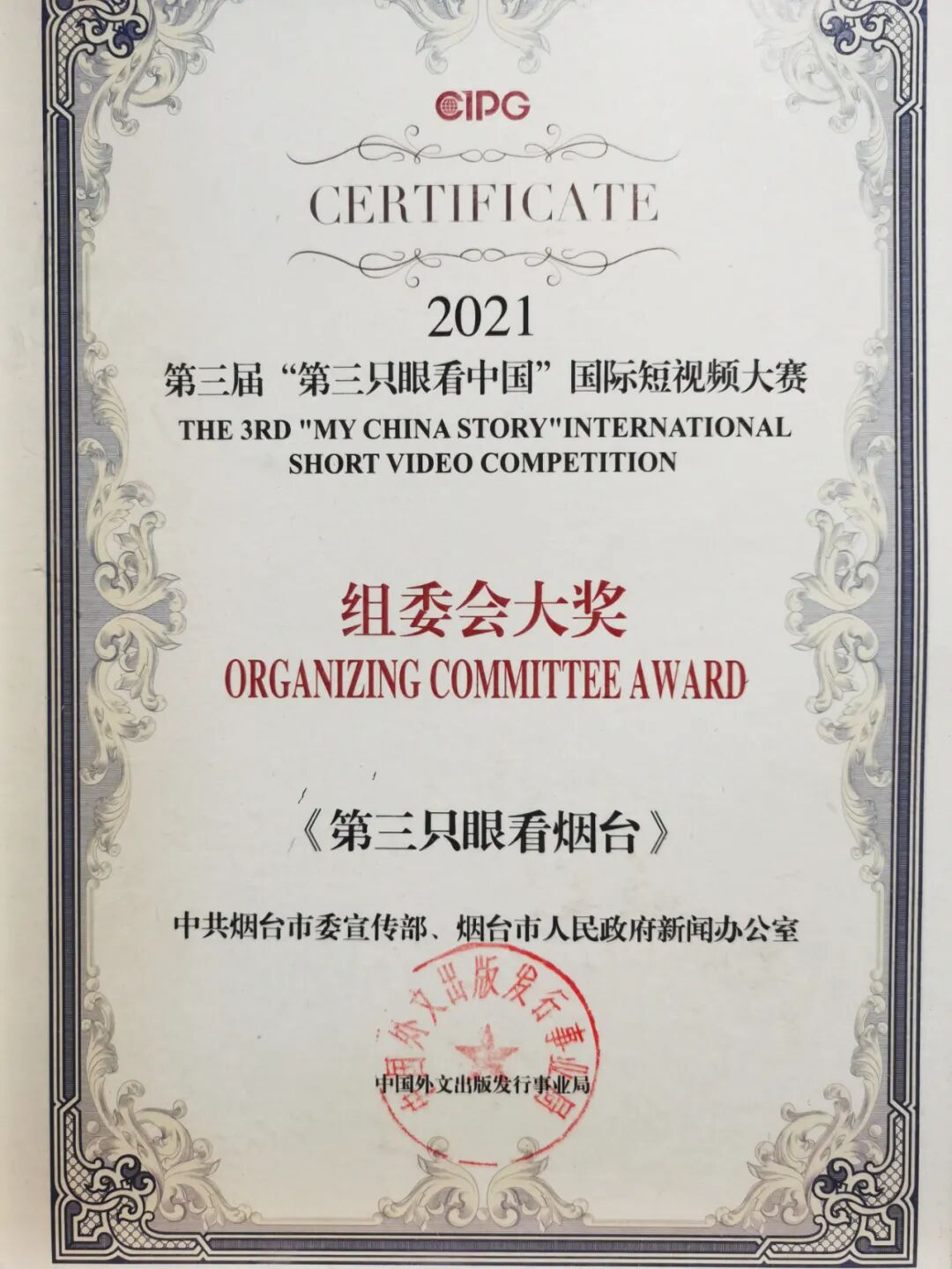 “第三只眼看中国”国际短视频大赛,烟台市获组委会大奖!