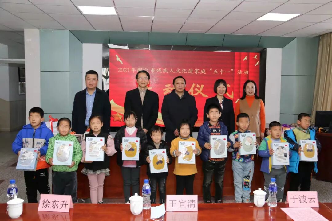 为了进一步丰富残疾人的精神文化生活,扎实推进党史学习教育“我为群众办实事”实践活动走深走实,不断提升残疾人享有公共文化服务水平。12月3日,第30个“国际残疾人日”到来之际,烟台市残疾人联合会与烟台市特殊教育学校、滨州医学院共同组织开展了残疾人文化进家庭“五个一”系列服务活动,切实把党史学习成效转化为工作动能,不断增强广大残疾人朋友的获得感、幸福感。市残联党组书记、理事长王宜清,市特殊教育学校校长徐东升,市残疾人事务综合服务中心党支部书记、主任于波云,滨州医学院特殊教育学院党总支副书记巩雪梅等参加了活动仪式。