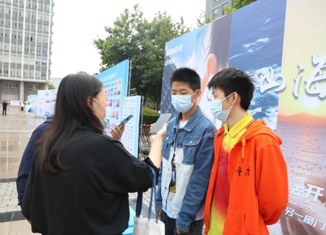 周恒宇(左一)、黄传鑫(右一)两位同学正在接受采访