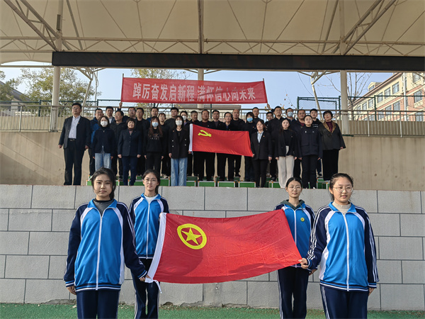 当代中国青年是与新时代同向同行、共同前进的一代,生逢盛世,肩负重任。党员教师与高一1-20班依次进行宣誓。新时代的新青年,青春正当时,奋斗正当时,要红心向党,一同唱响砥砺奋进的时代最强音。