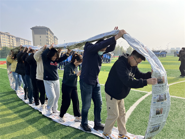 为构建以党建带动团建的互促共建模式,激情的宣誓结束后进行“无敌风火轮”团体活动。党员教师与青年学生同赛道竞技,大家团结协作,奋勇争先,向着共同的目标砥砺奋进、勇毅前行。轻如惊鸿,扶摇直上九万里;势若游龙,气吞万里不曾休。场上的助威呐喊的声音仍响彻云霄,矫健的身影穿过赛道,挥洒热血的汗水布满赛场,青春正在扬帆起航!