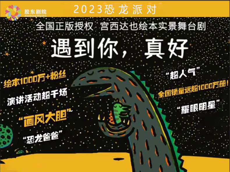 恐龙大概是宝贝们既好奇又喜欢的“神奇朋友”。改编自宫西达也恐龙系列的同名绘本《遇到你,真好》,霸王龙与棘龙宝宝一场孤岛漂流的奇妙旅程,“爱和善良可以把敌人变为朋友”。超治愈剧情,带上宝贝一起走进充满爱和勇敢的恐龙世界吧!现场还为宝贝们准备了萌娃恐龙变装秀、侏罗纪时空涂鸦秀、恐龙王国Show Time三大外场活动体验区以及舞台体验展示环节!