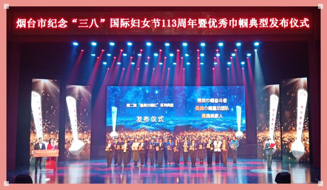 3月7日,中共烟台市委宣传部、烟台市妇女联合会在胶东剧院举办烟台市纪念“三八”国际妇女节113周年暨优秀巾帼典型发布仪式,烟台市知识产权保护中心专利预审确权团队获评十大“最美巾帼建功团队”。