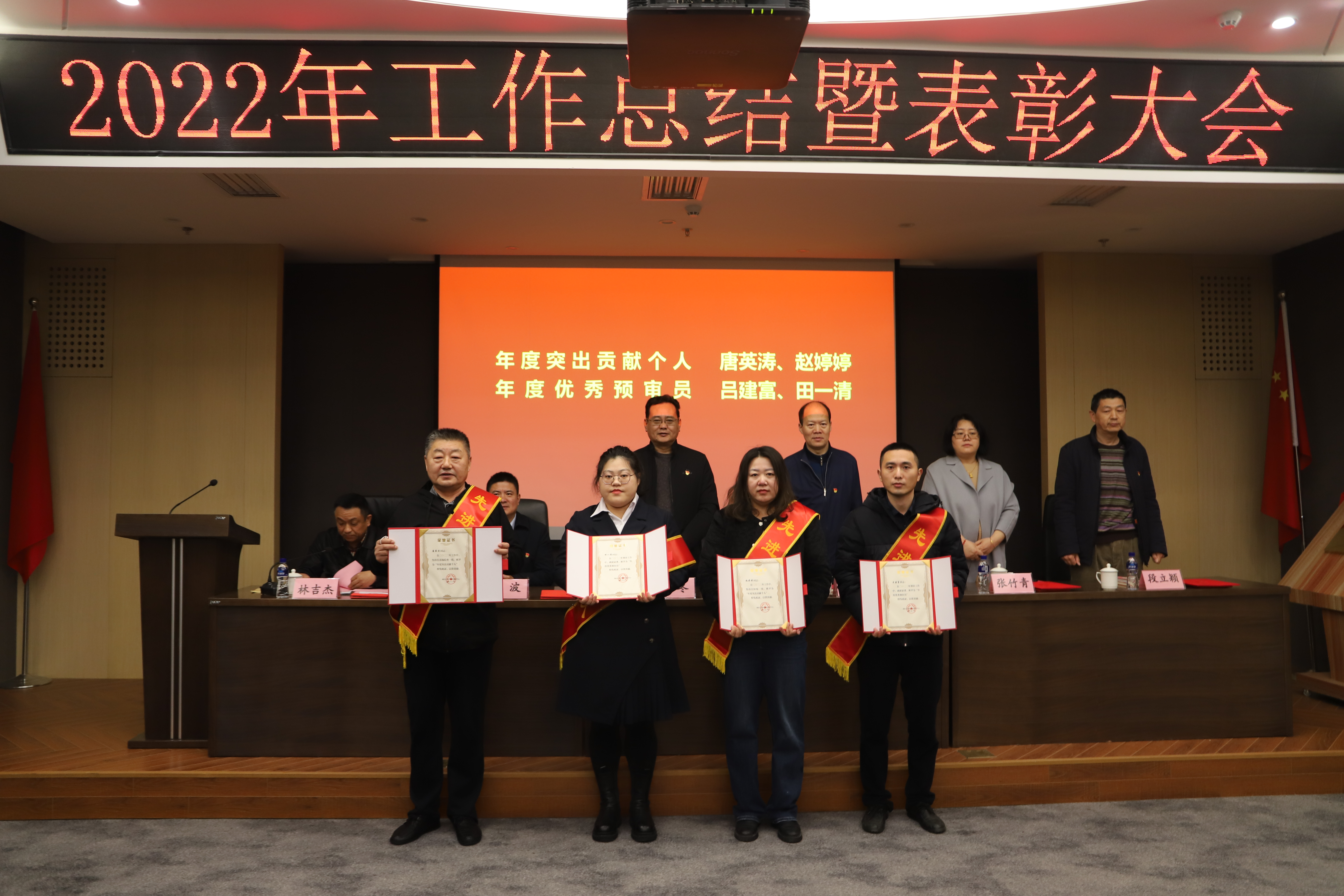 会上,林吉杰副主任宣读了《关于表彰2022年度先进科室和先进个人的通报》,会议对2022年度先进科室和个人进行了表彰,高冬局长同其他领导分别为获奖科室和个人颁奖。获奖科室和个人代表进行了表态发言。林吉杰副主任表示,希望受表彰的先进科室和先进个人谦虚谨慎,再接再厉,不断取得新的成绩。全体干部职工要向受表彰的先进科室和先进个人学习,立足本职、爱岗敬业、扎实工作、积极进取、创先争优,努力为知识产权事业高质量发展做出新的更大贡献!