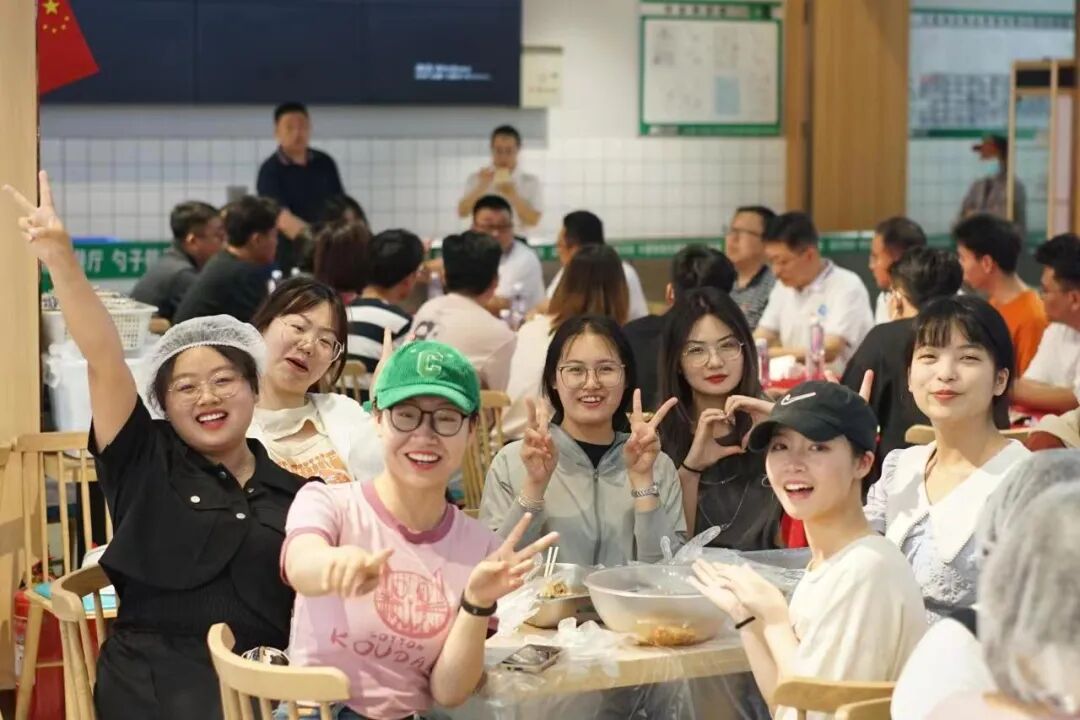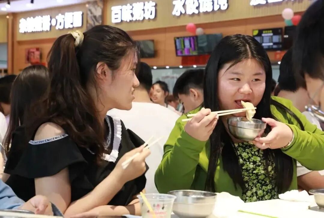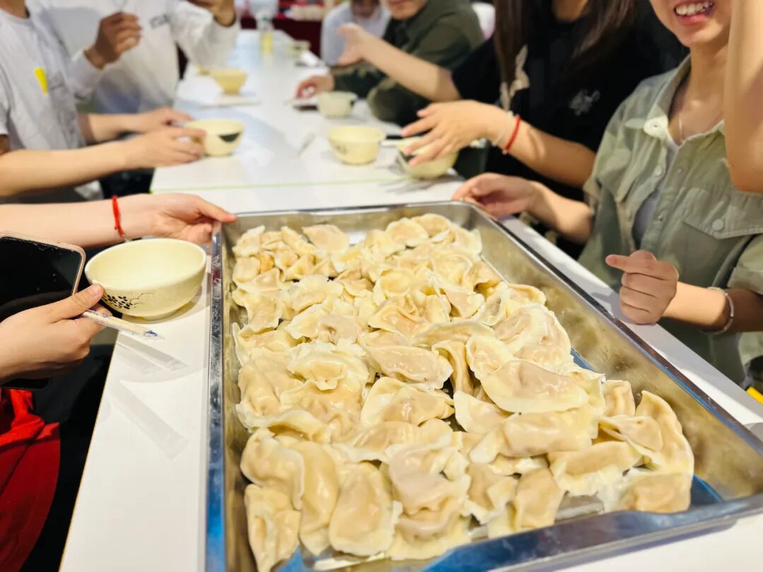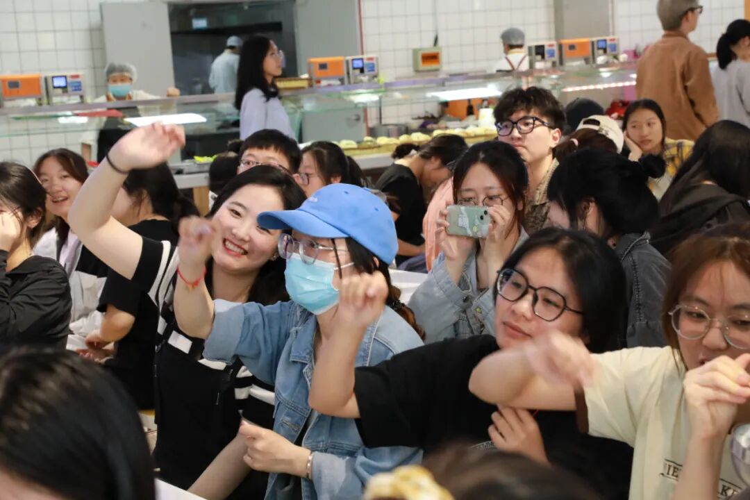 在一进餐厅的醒目处,摆放着为同学们准备的“惊喜”——一个长达六米并印有“祝2023届毕业生前程似锦、大展宏图、快乐无忧”字样的大蛋糕。“我一进门就看到了这个大蛋糕,太用心、太感动了……”环境与材料工程学院的毕业生徐源在各个角度拍下这个专属于烟大2023届毕业生蛋糕的照片,立刻与朋友们“炫耀”这份来自母校的爱。烟台大学副校长王强来到现场与同学们一起切蛋糕、送祝福、话别离,每一位领取蛋糕的同学脸上都洋溢着幸福的笑容。“我们每个人都分到了一块蛋糕,真甜……”此时此刻,蛋糕的美味香甜和饺子的浓情满满交织在空气中,弥漫不散,化作声声祝福和殷殷期盼,温暖在毕业生的心田。