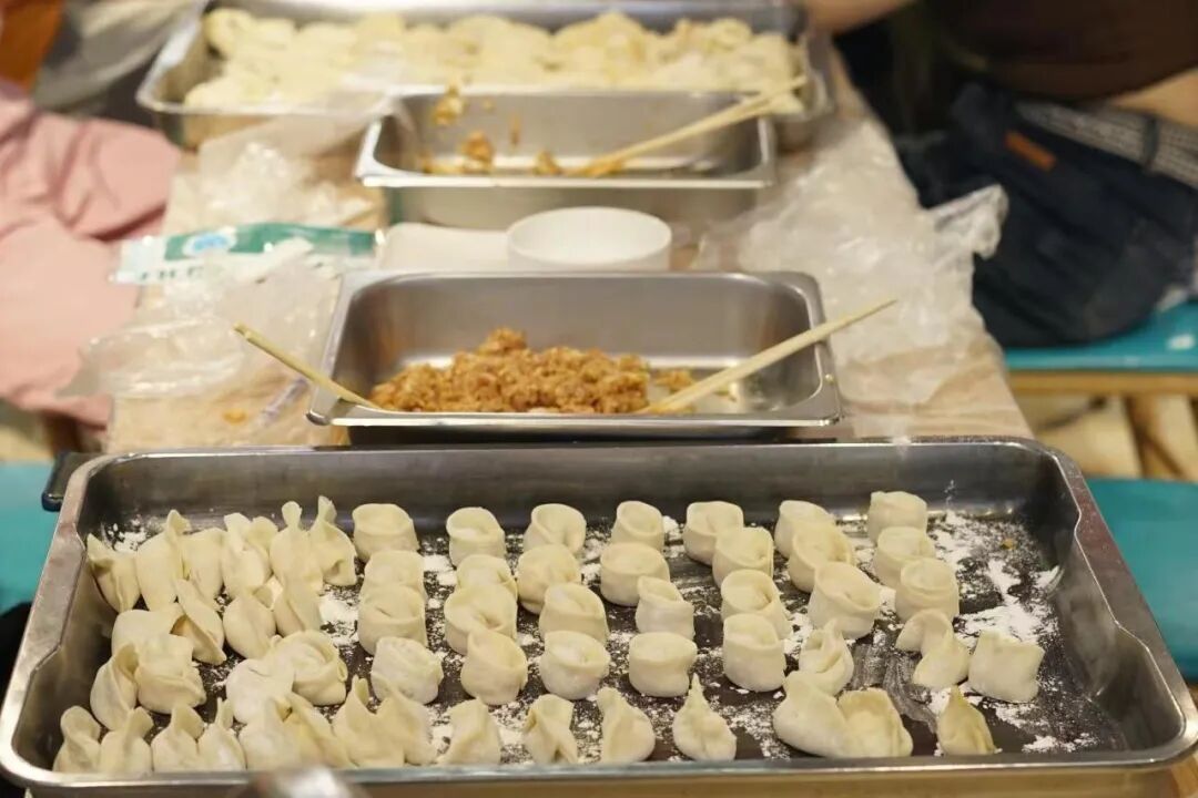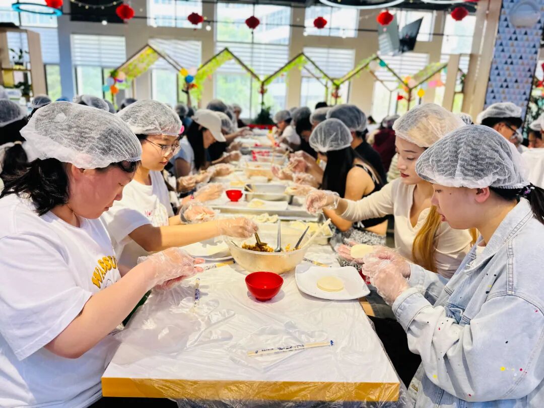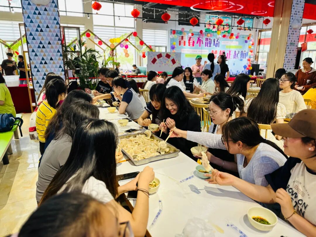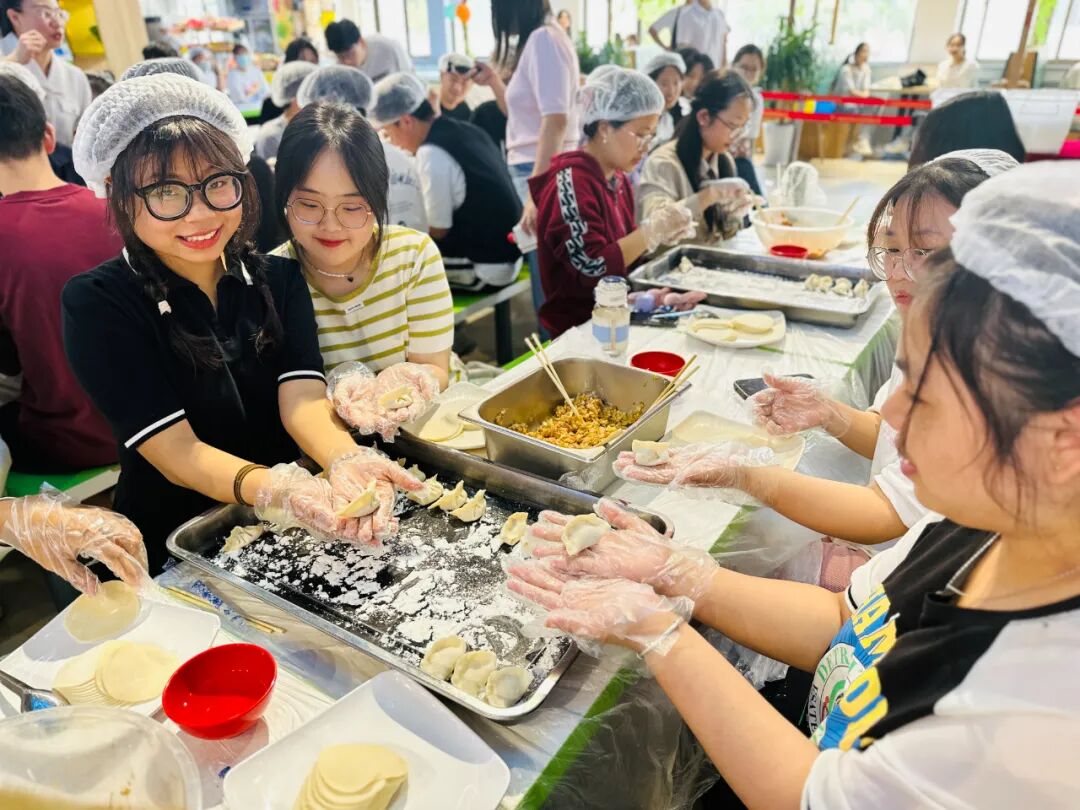 在一进餐厅的醒目处,摆放着为同学们准备的“惊喜”——一个长达六米并印有“祝2023届毕业生前程似锦、大展宏图、快乐无忧”字样的大蛋糕。“我一进门就看到了这个大蛋糕,太用心、太感动了……”环境与材料工程学院的毕业生徐源在各个角度拍下这个专属于烟大2023届毕业生蛋糕的照片,立刻与朋友们“炫耀”这份来自母校的爱。烟台大学副校长王强来到现场与同学们一起切蛋糕、送祝福、话别离,每一位领取蛋糕的同学脸上都洋溢着幸福的笑容。“我们每个人都分到了一块蛋糕,真甜……”此时此刻,蛋糕的美味香甜和饺子的浓情满满交织在空气中,弥漫不散,化作声声祝福和殷殷期盼,温暖在毕业生的心田。