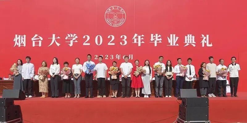 典礼在全场高唱国歌中拉开帷幕。党委副书记郭建国,党委常委、副校长宋中民分别宣读《烟台大学关于表彰2023届优秀毕业生的决定》《烟台大学2023年关于授予毕业生学士学位的决定》。学校领导为优秀毕业生代表颁奖,同学们接过满载肯定与期望的荣誉,闪烁着金光的证书熠熠生辉。