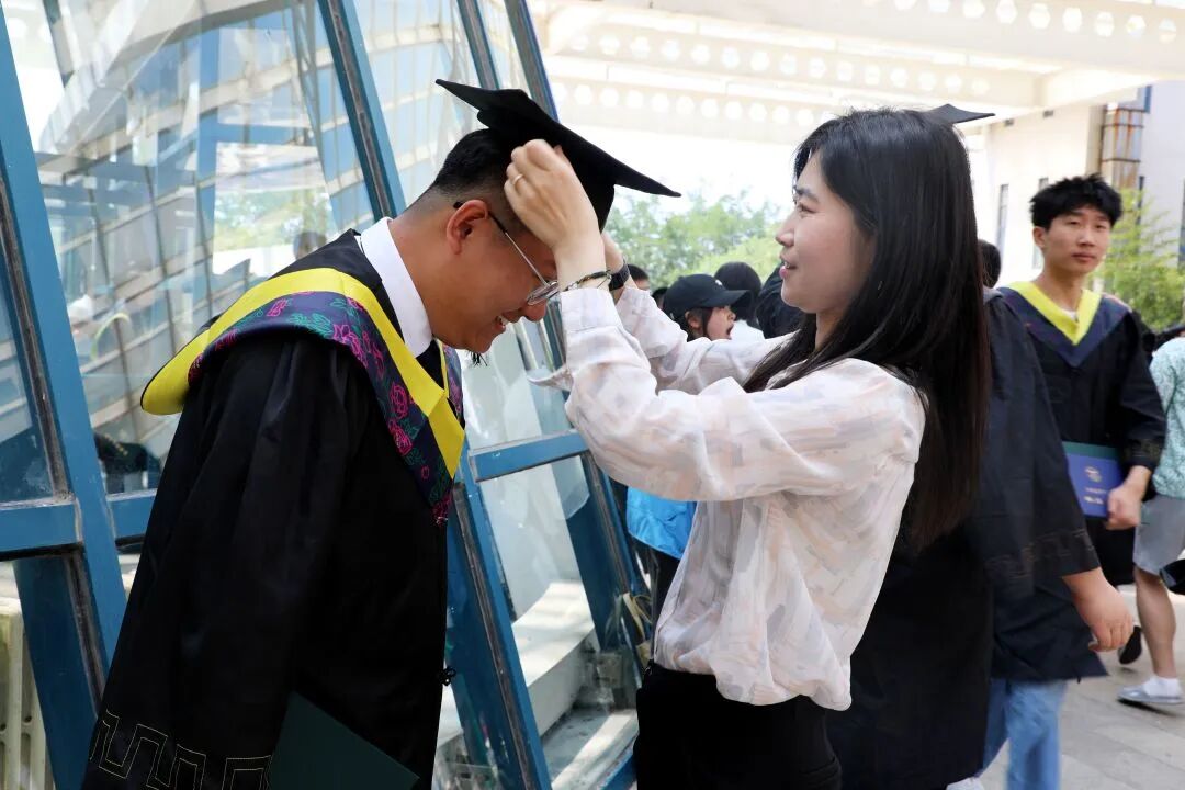 随后,学校在大学生活动中心举行了庄重的学位授予仪式。学校领导为毕业生逐一颁发学位证书、拨穗正冠、握手致意。毕业生们手捧学位证与校领导合影留念。镜头里,留下一个个永恒的美丽笑靥。
