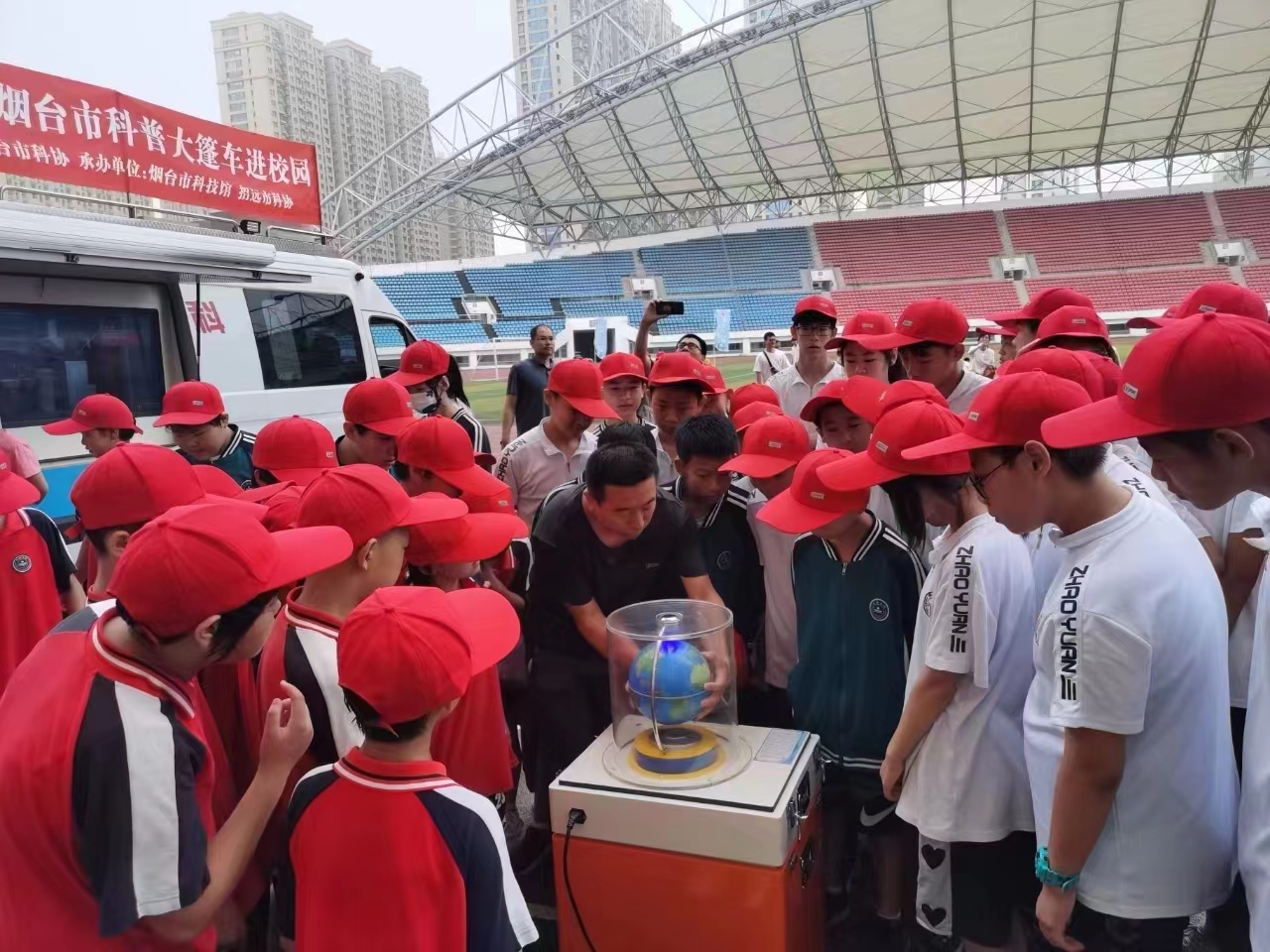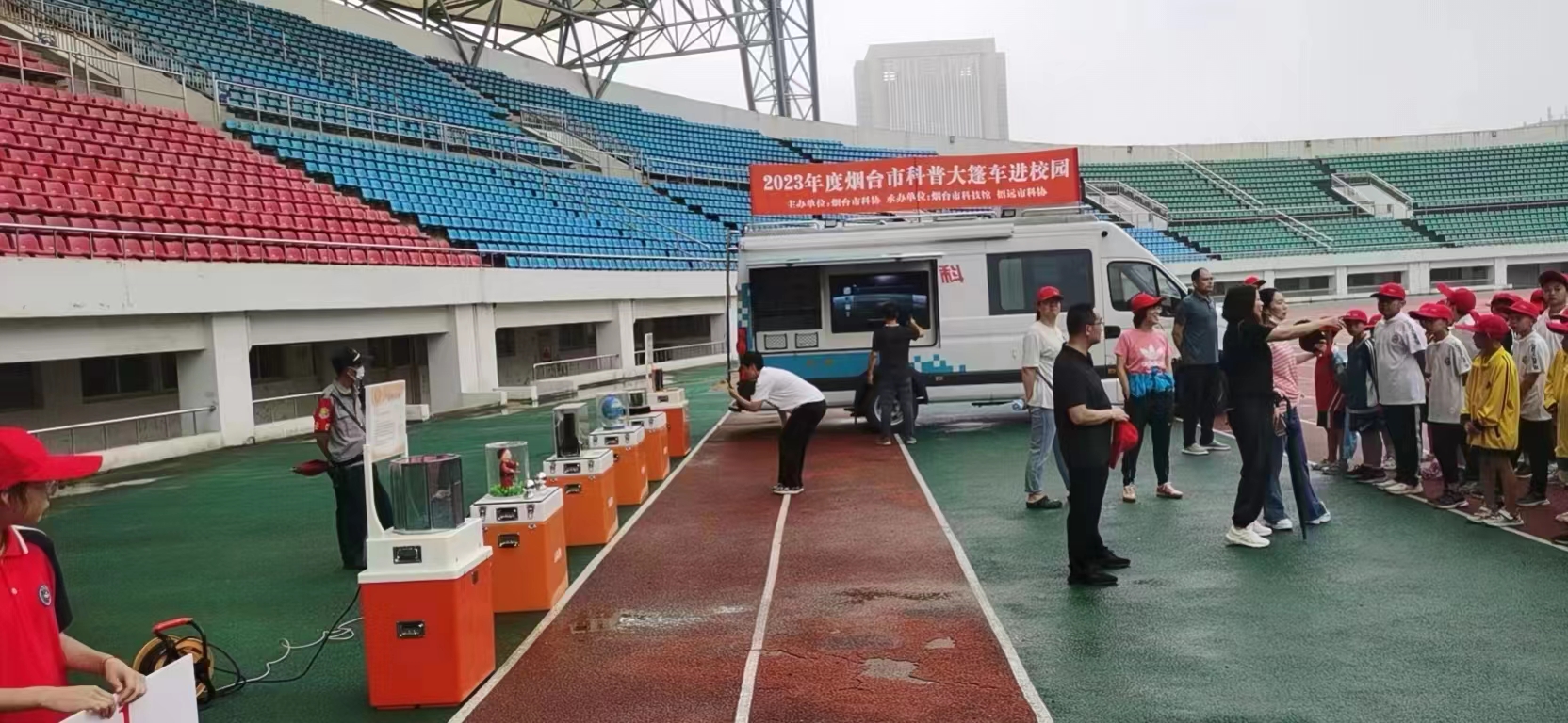 为了宣传贯彻党的二十大精神,充分发挥科普大篷车“流动科技馆”独特的科普功能,提升青少年数字素养,培养在校学生创新精神和实践能力,6月29日,在烟台市科协部署下,烟台市科技馆科普大篷车满载科技展品驶入招远市体育场,为招远市第二届青少年科技节助力。