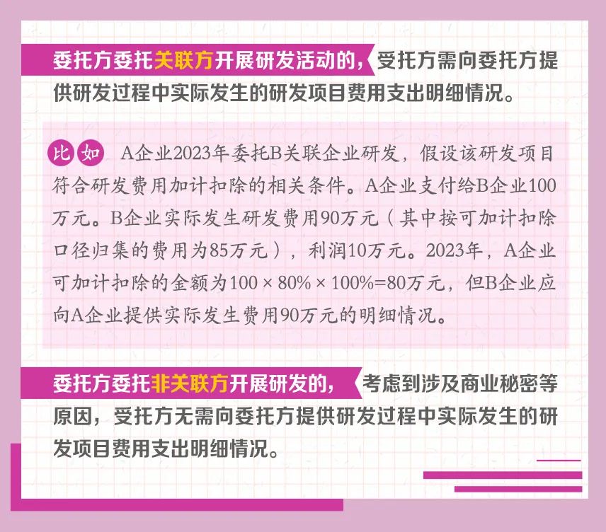 近年来,研发费用加计扣除政策持续优化完善,呈现出年年加力、步步扩围、层层递进的特点,对支持企业投入研发、鼓励科技创新起到重要作用。为帮助纳税人全方位学习了解相关政策规定,我们制作了“研发费用加计扣除政策系列图解”。今天带你了解:企业委托关联方和非关联方管理要求的区别↓