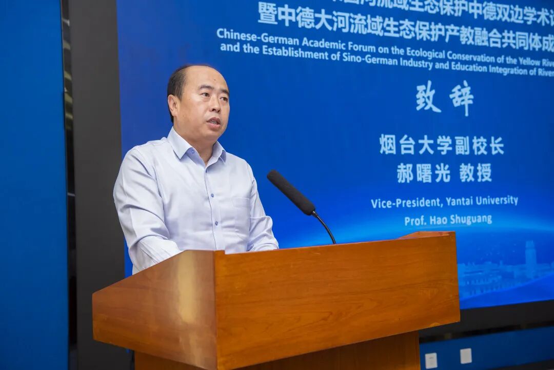 烟台大学副校长郝曙光、德国斯图加特大学副校长Silke Wieprecht、烟台市生态环境局副局长孙朝晖出席并致辞。