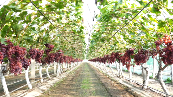 王殿国告诉记者,无核克瑞森是美国加州继红提葡萄之后推出的又一无核葡萄新品种。20世纪90年代引入中国,他早在十二年前就确定为殿国果蔬专业合作社的主打品种,在国家葡萄产业技术体系胶东综合试验站和龙口市果树站的帮助下,率先在无核克瑞森上进行水肥一体化技术、无纺布覆盖技术、葡萄V型叶幕修剪技术,解决了无核克瑞森产量不稳定、着色困难等种植难题,使得殿国果蔬专业合作社所种出的葡萄质量也是连年提升,引领龙口鲜食葡萄产业不断行使在发展的快车道上。