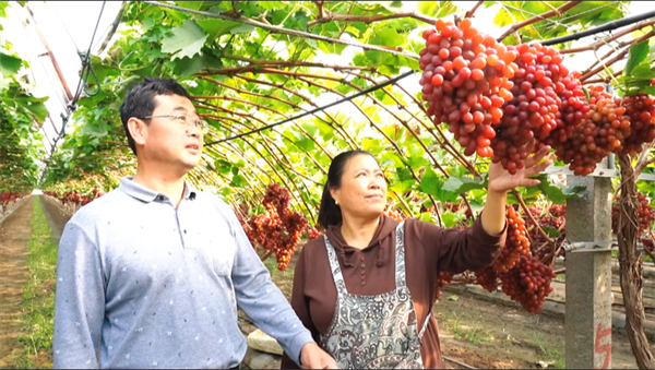 金秋十月,龙口市殿国果蔬专业合作社的科瑞森葡萄园内,丰收的喜悦正持续不断荡漾开来。合作社负责人王殿国与妻子宗金玲马上就要准备采摘,硕大的葡萄串,多的一串足有200多粒葡萄,王殿国严格控制了亩产量,使得葡萄的糖度更高,品相更佳。正值秋风送凉,这时候吃上一粒,凉飕飕,透心甜,妙不可言。