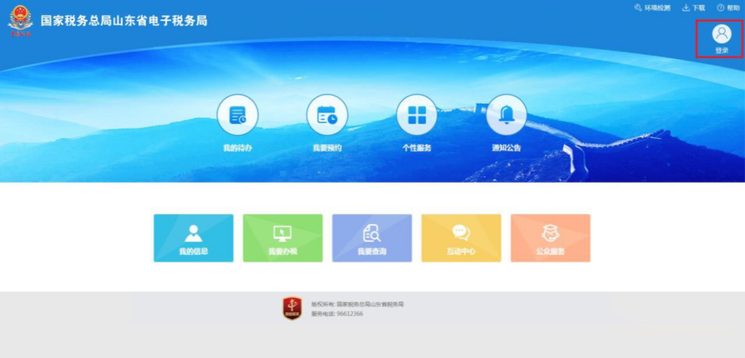 1、打开电脑网页版山东省电子税务局, 点击页面右上角“登录”,电脑跳转至新版登录界面。