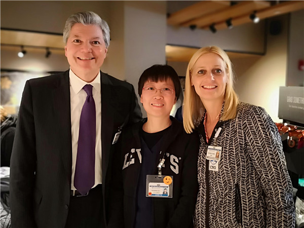 于鲁欣(中)在国际知名护理中心参观交流