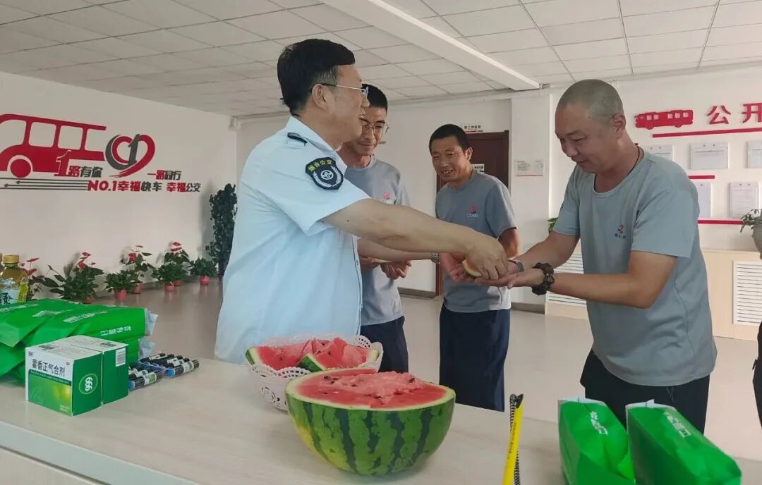 为切实保障一线员工的身心健康,烟台公交集团为坚守岗位的公交一线职工准备了西瓜、矿泉水、藿香正气液、清凉油、祛暑茶等防暑降温物品。组织志愿者到站点为驾驶员“送清凉”,叮嘱大家要打起精神、安全驾驶,继续以充沛的精力、良好的工作状态、优质的服务,为市民出行提供优质服务保障。