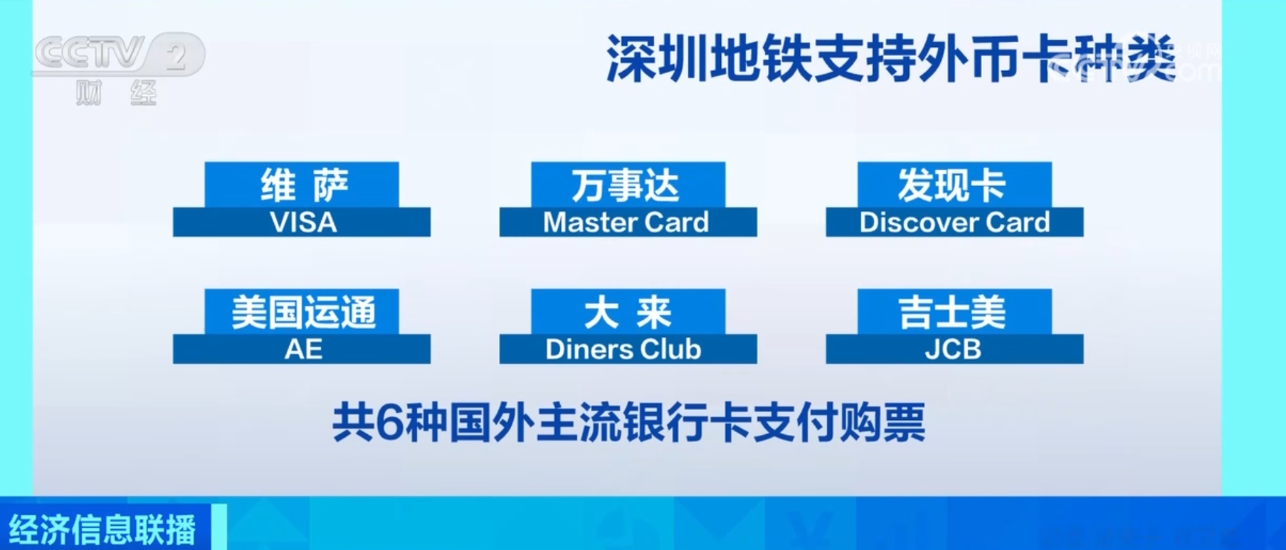 据了解,目前,深圳地铁可支持维萨(VISA)、万事达(Master Card)、发现卡(Discover Card)、美国运通(AE)、大来(Diners Club)、吉士美(JCB)共6种国外主流银行卡支付购票,这次改造后也同步支持数字人民币“硬钱包”购买车票。