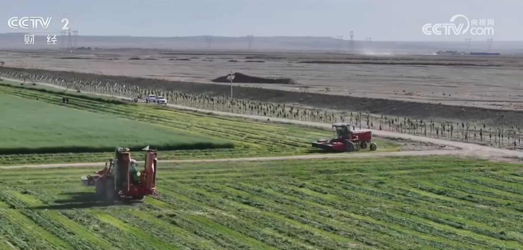 这些年,随着盐碱地改良,让这片盐碱地上种出了优质牧草,为当地的牛羊养殖提供了营养丰富的饲料。
