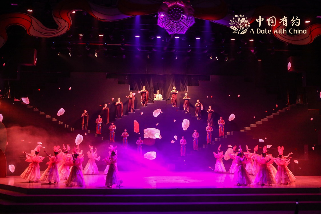 探访活动还安排了一场精彩的表演。2023年大馕城中厅进行升级改造,修建了大型演艺舞台,打造一台以古代龟兹乐舞和当下库车非遗相融合的乐舞诗剧目。外籍自媒体人们在欣赏了精彩的表演后,纷纷走上舞台与演员们一起互动,感受着千年古城人民的热情与友好。