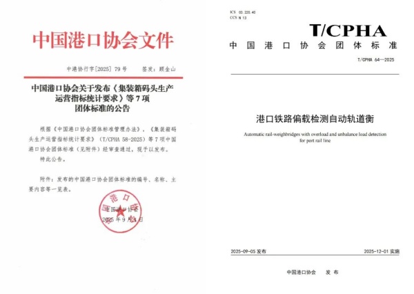 胶东在线9月19日讯 近日,由山东港口烟台港主导编制的中国港口协会团体标准《港口铁路偏载检测自动轨道衡》正式发布。该标准历经四年的攻坚打磨,填补了国内港口铁路偏载检测领域的标准空白,标志着我国港口铁路货运安全管理迈入标准化、智能化的新阶段。