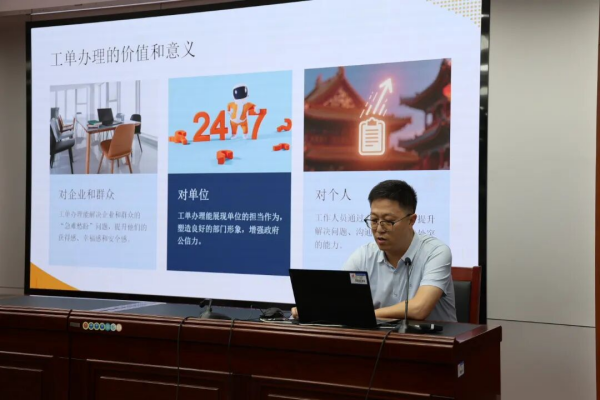会议结合实际工单,通过欠薪类、赔偿类等正反典型案例分析的形式,深入讲解处理思路、难点问题应对技巧,引导参训人员举一反三,提升问题解决能力。同时对热线办理系统的操作流程、功能模块进行演示说明,帮助参训人员熟练掌握系统使用方法,提升工单流转效率。