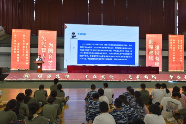 近日,高新公安联合市局反诈中心到烟台二中,为军训的同学们带来了一场生动而深刻的反诈体验,民警与同学们就反诈主题进行了问答互动,通过游戏的方式,让同学们意识到电信诈骗随时可能出现在我们身边,要学会正确识别电信诈骗、避免经济损失,守护好父母的钱袋子,更要维护好自身的用网安全。