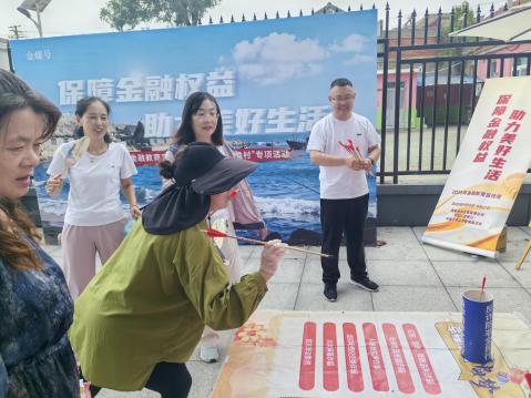 活动现场,各家同业机构打造丰富的特色互动环节。我公司把金融消保知识与非遗漆扇创意结合起来,让严谨的金融常识随着漆扇上细腻的纹样流转,既守护大家的“钱袋子”,又让非遗文化焕发新彩;还设置了套圈游戏“套住权益”、传统投壶“精准反诈”,让村民在轻松愉快的氛围中了解学习金融知识。