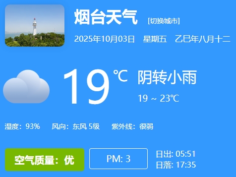 常规预报: 烟台市海洋环境监测预报中心发布24小时海洋预报(10月3日0时-10月4日0时) 东部海域(开发区至牟平区)将有1.0米的轻浪,风浪向东;平均水温:23.3-23.8℃; 蓬长海域(蓬莱区)将有0.6米的轻浪,风浪向东;平均水温:21.2-23.8℃; 西部海域(莱州市至龙口市)将有0.6米的轻浪,风浪向东;平均水温:23.4-24.4℃; 南部海域(海阳市至莱阳市)将有2.2米的中浪,风浪向东;平均水温:24.0℃;