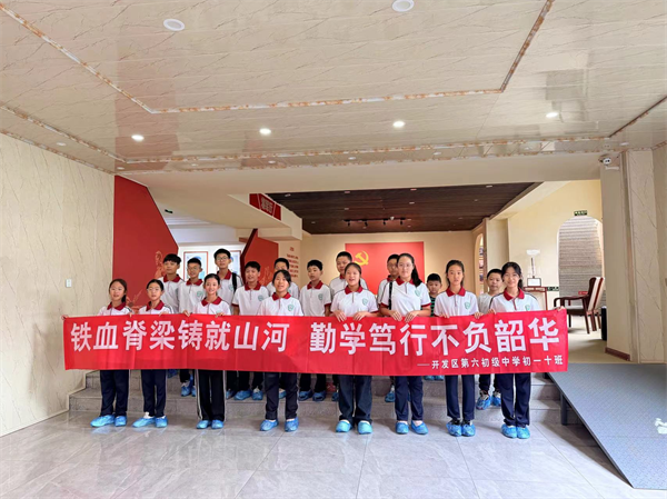 胶东在线10月9日讯(通讯员 邰海伟)在国庆假期的最后一天,开发区第六初级中学2025级10班的同学们以“铁血脊梁铸就山河,勤学笃行不负韶华”为口号,走进烟台开发区磁山爱国主义教育展览馆,进行了一场深刻而有意义的家国情怀教育活动。