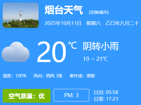 东部海域(开发区至牟平区)将有1.0米的轻浪,风浪向东北;平均水温:21.3-21.9℃;