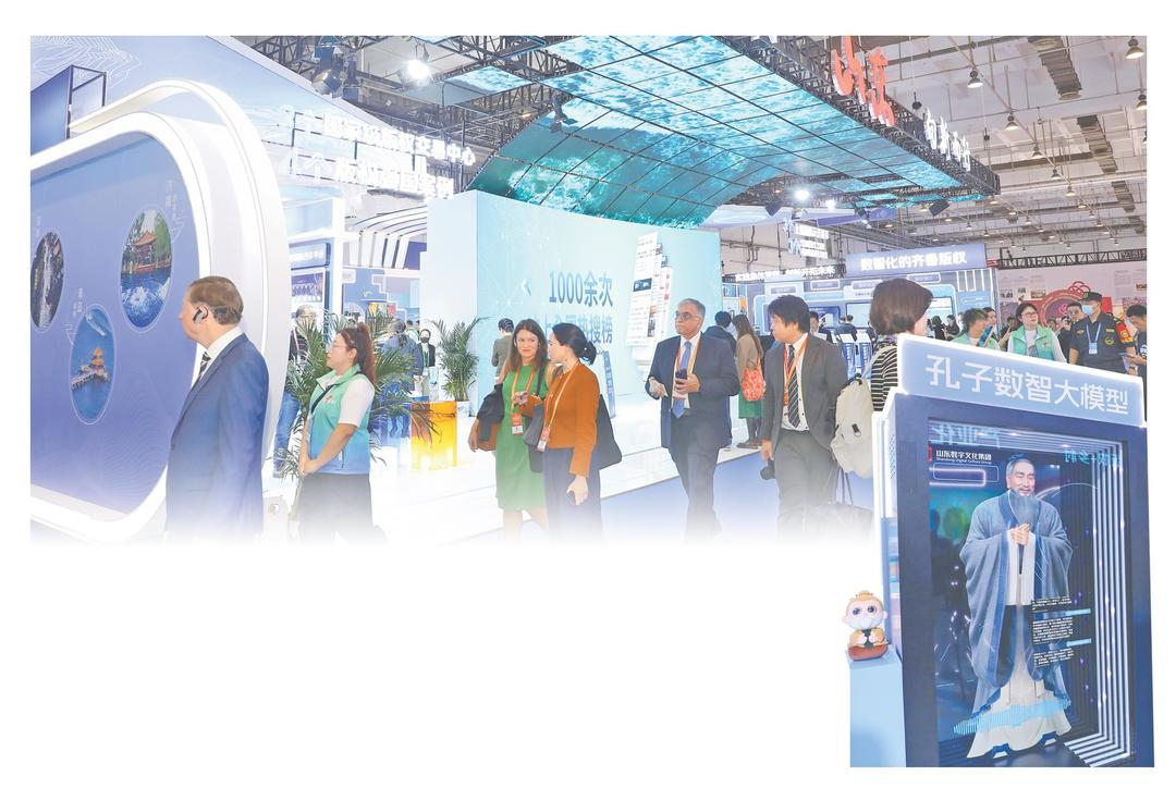 大图:10月16日,第十届中国国际版权博览会山东展区迎来参观者。小图:“孔子数智大模型”亮相。(记者 薄克国 赵琳)