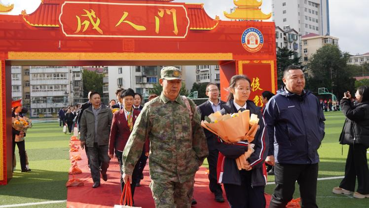 在温馨感人的氛围中,学生与家长携手依次跨越象征成长与责任的“成人门”,标志着同学们正式步入了成年人的行列。家长为学生们郑重佩戴上成人帽和成人徽章,寄托着深深的祝福与殷切的期望。
