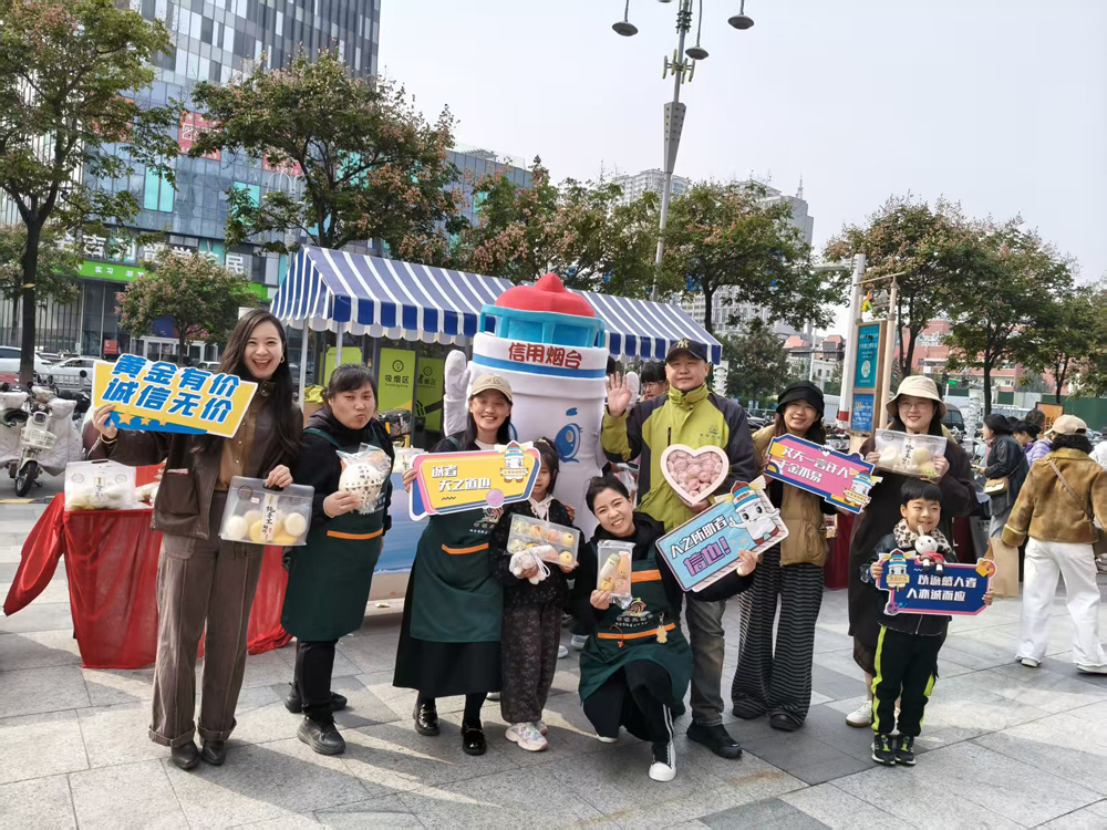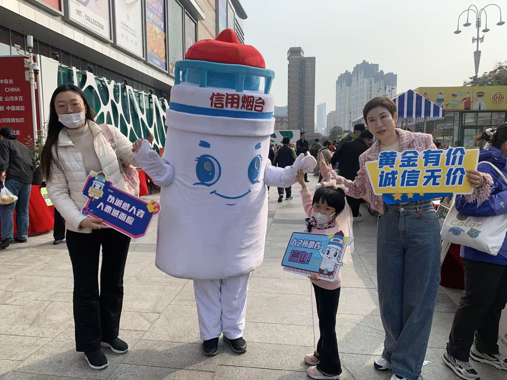 活动现场,“烟小信”主题玩偶格外吸睛,它时而帮各工坊、摊位整理物品,时而与现场市民击掌、互动,所到之处满是欢声笑语,形成“逛集市、学信用、享实惠”的热闹场景。在便民服务区,扬帆助学公益发展中心负责人正在为大家介绍“一对一”助学、关爱青少年身心健康成长、中小学生社会实践与志愿服务等公益项目,她表示,不管做什么事情,一定要把诚信放在首位,这不仅是一个人道德品质的体现,更是团队协作时汲取能量的源泉。“放心好物区”某茶叶摊摊位前挂着“货真价实”标识,摊主王女士说:“做生意靠的就是童叟无欺,产品要公开、透明,不混装,斤两足,确保品质真实,这样才能走得长远!”