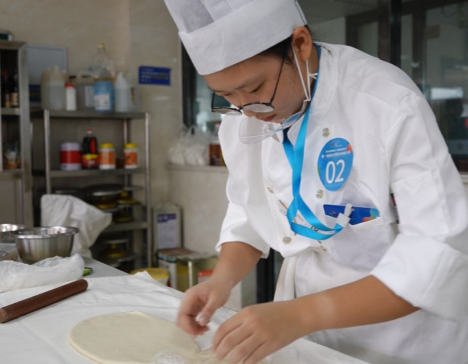 在山东城市服务职业学院分赛场进行的比赛是中式面点、中式烹调、糖艺/西点制作、咖啡师、烹饪(西餐)和美容,成为首届技能盛会中最具烟火气与创意感的赛区。比赛中,每一道端出的作品,都承载着他们对匠心的执着追求。在中式面点赛场,选手俞莉丽首次参加技能比赛,“这次大赛让我得到很好的锻炼,对以后工作更有信心了,像做蛋糕时可以用上糖艺装饰,对我参加实习也会很有帮助。”