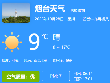 东部海域(开发区至牟平区)将有0.6米的轻浪,风浪向 西南 ;平均水温:15.0-16.9℃;