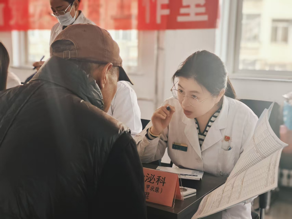 上午九点,义诊现场就有不少居民排队等候咨询。“医生,我最近总觉得口渴、乏力,会不会是血糖有问题?”一位中年女士向内分泌科徐鑫淼副主任询问道。在详细询问其病史后,徐鑫淼副主任建议她进行现场餐后血糖检测,并耐心解释道:“糖尿病早期症状隐匿,定期筛查是关键。您的情况需要进一步做糖化血红蛋白检查,同时要开始注意饮食结构和增加运动,建议到内分泌科进一步就诊。”